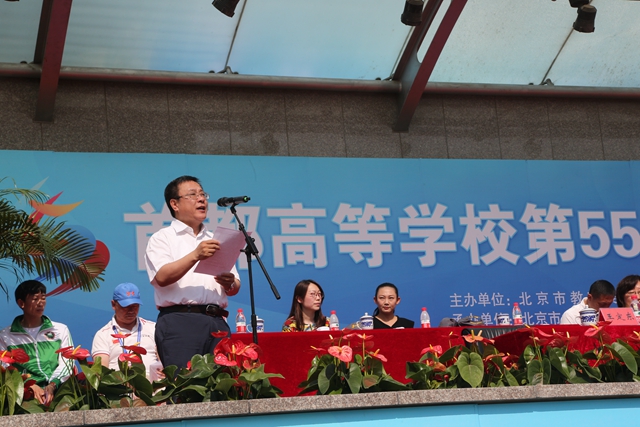 隨后,北京市教委主任劉宇輝致開幕辭。首先,他對承辦本屆運動會的北京理工大學表示衷心的感謝。他說,此次是一次相互交流的盛會,也是對各高校體育工作的一次檢驗。希望全體學生運動員發(fā)揚“更高、更快、更強”的奧林匹克精神,自信自強、奮力拼搏,希望參賽高校以本屆運動會為契機全面提升學校體育工作的水平和質量。最后他預祝運動員取得優(yōu)異成績和本屆運動會取得圓滿成功,并邀請副市長王寧宣布運動會開幕。