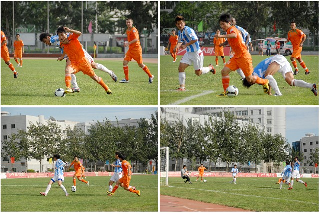 開場(chǎng)僅5分鐘,北理工左路發(fā)動(dòng)進(jìn)攻,邊路球員楊陽(yáng)突破至底線將球傳入禁區(qū),中路包抄的荷蘭外援埃米爾推射得分為北理工首開記錄,1:0。18分鐘鄒捷中路接球后,擺脫兩名防守隊(duì)員起腳射門,北理工后衛(wèi)奮力擋出。第25分鐘,沈陽(yáng)隊(duì)李根開出前場(chǎng)任意球,外援23號(hào)保羅頭球一蹭險(xiǎn)些扳平場(chǎng)上比分。