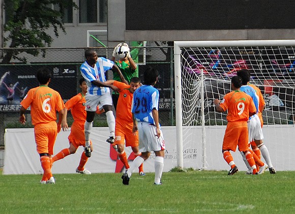 在上半場(chǎng)補(bǔ)時(shí)階段,沈陽(yáng)東進(jìn)連續(xù)利用角球定位球等攻勢(shì)向北理工腹地發(fā)動(dòng)猛攻,但北理門將孫程卻充分發(fā)揮了其身高力量?jī)?yōu)勢(shì),高接抵擋將力保本隊(duì)城門不失。上半場(chǎng)北理工1比0領(lǐng)先沈陽(yáng)東進(jìn)。