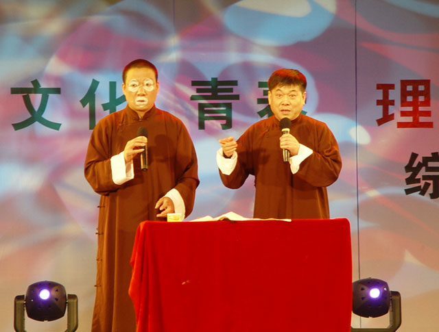 燕山情藝術(shù)團(tuán)的演員們?yōu)榇蠹規(guī)?lái)了精彩的“雙簧”表演