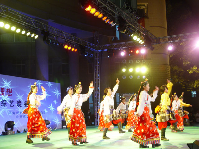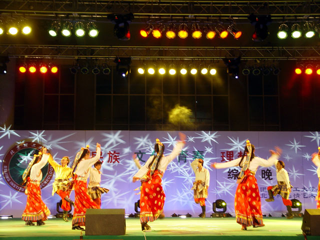 我校管理與經(jīng)濟(jì)學(xué)院的學(xué)生和來(lái)自中央民族大學(xué)的藏族同學(xué)共同表演了藏族舞蹈。
