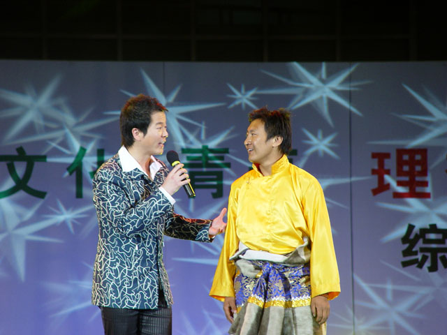 主持人正在采訪參與演出的我校管理與經(jīng)濟(jì)學(xué)院的藏族同學(xué)。