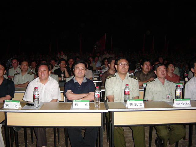校黨委副書記、副校長(zhǎng)楊賓與炮兵指揮學(xué)院院長(zhǎng)曹淑信少將、張家口市副市長(zhǎng)侯亮等領(lǐng)導(dǎo)在觀看演出