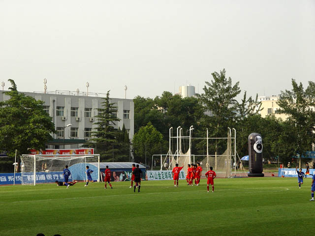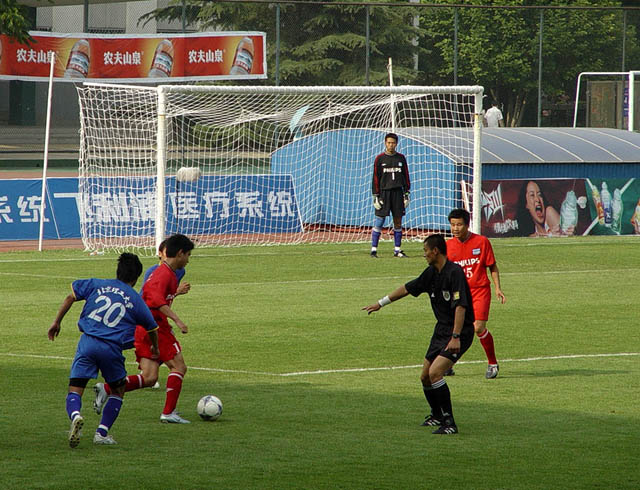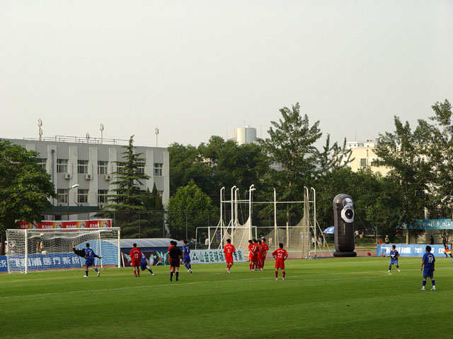 球向著同濟(jì)大學(xué)守門員守的半邊直飛而去,直接任意球破門,北京理工大學(xué)在終場前扳回一球,為三屆冠軍挽回一點面子。 隨著主裁判的一聲哨響,同濟(jì)大學(xué)以4:1戰(zhàn)勝北京理工大學(xué),獲得第五屆飛利浦中國大學(xué)生足球聯(lián)賽的第三名,而北京理工大學(xué)憾居第四。 明天,同樣在人大,冠亞軍比賽將展開,由中國人民大學(xué)對陣東華大學(xué)。