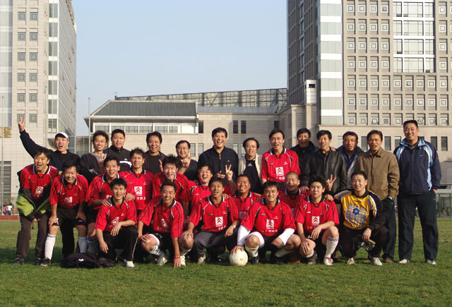 我校教工足球隊(duì)已經(jīng)成立近10年,由來(lái)自各學(xué)院及機(jī)關(guān)、直屬、后勤等單位的教職工組成,隊(duì)員年齡從二十歲出頭到年近半百不等,其中既有博導(dǎo)、教授、院長(zhǎng),也有普通教職員工,他們是一個(gè)非常團(tuán)結(jié)的集體,在以往的比賽中也取得了不俗的戰(zhàn)績(jī)。在去年的第一屆北京高校教工足球聯(lián)賽中,他們?cè)@得第四名。在今年的聯(lián)賽中,他們?cè)谌ツ昵叭姼矝](méi)的情況下,敢于拼搏,率先進(jìn)軍前四名,而今年聯(lián)賽的冠亞軍北京體育大學(xué)隊(duì)和大學(xué)生體育協(xié)會(huì)足球隊(duì)明顯有準(zhǔn)專(zhuān)業(yè)隊(duì)員的背景,所以此次比賽,我校教工足球隊(duì)私下里被其他學(xué)校足球隊(duì)稱(chēng)之為“無(wú)冕之王”。