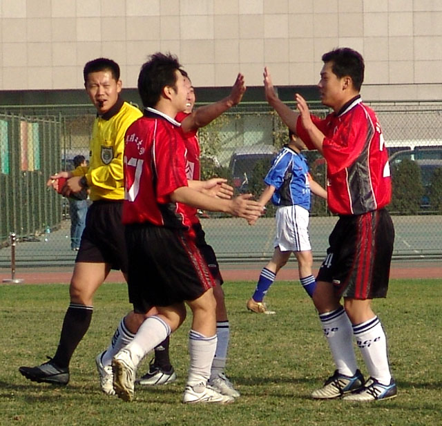 經(jīng)過(guò)大家的奮力拼搏和密切配合,在第三節(jié)的比賽中,我校足球隊(duì)穩(wěn)扎穩(wěn)打,步步為營(yíng),終于在第10分鐘和第20分鐘各進(jìn)一球,最終以2:1戰(zhàn)勝了清華大學(xué)足球隊(duì)!讓我們?yōu)楸本├砉ご髮W(xué)教工足球隊(duì)喝彩和歡呼吧!祝愿他們?cè)诮窈蟮谋荣愔性俳釉賲枺賱?chuàng)佳績(jī)!
