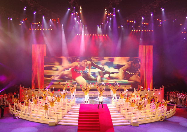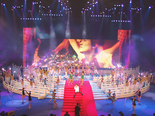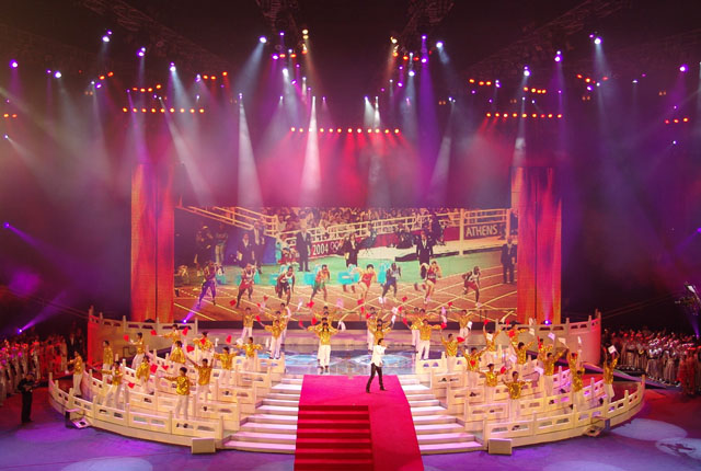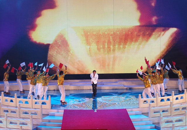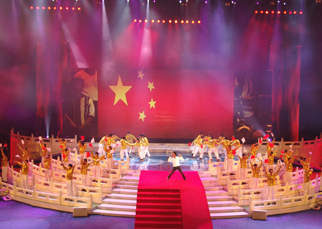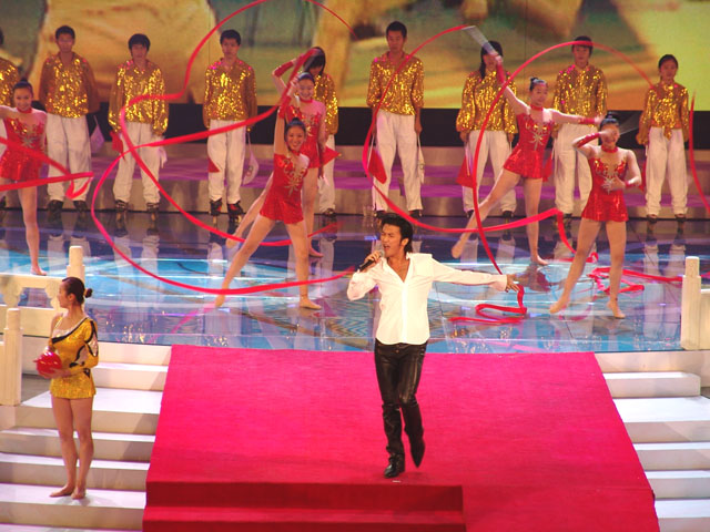 文藝演出的第四個(gè)節(jié)目是《為你榮光》,由香港著名歌星謝霆鋒演唱歌曲,我校同學(xué)擔(dān)任伴舞,其精彩的表演贏得了現(xiàn)場(chǎng)觀眾的陣陣歡呼。