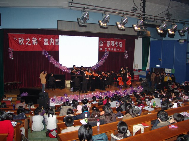 “秋之韻”室內(nèi)音樂會是由校團(tuán)委、藝教中心主辦的傳統(tǒng)音樂會,從1998年開始舉辦,至今已經(jīng)舉辦了8屆。我們本著將高雅藝術(shù)在校園內(nèi)進(jìn)行普及與推廣的目的,受到了大家熱烈的歡迎。我們對支持和關(guān)心我們大學(xué)生藝術(shù)團(tuán)成長、發(fā)展的朋友們表示衷心的感謝。也希望我們的藝術(shù)團(tuán),能在音樂的道路上取得更好的成績。