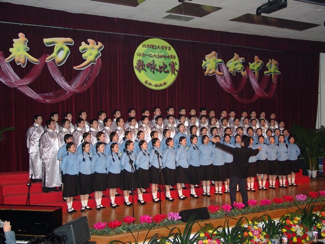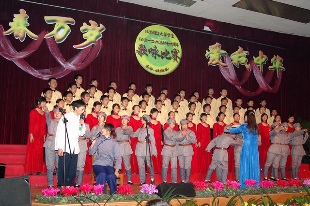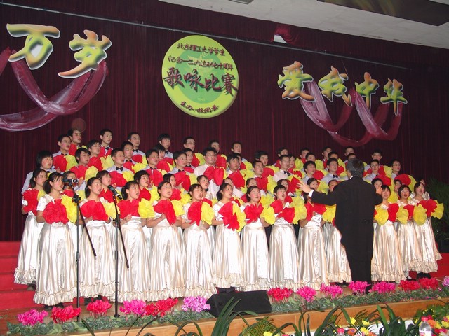 紀(jì)念一二•九運(yùn)動(dòng)歌詠比賽是校團(tuán)委在全校范圍內(nèi)組織的一項(xiàng)傳統(tǒng)活動(dòng),也是對(duì)廣大同學(xué)進(jìn)行愛(ài)國(guó)主義教育一種有效的形式。今年恰逢一二•九運(yùn)動(dòng)七十周年、抗日戰(zhàn)爭(zhēng)勝利六十周年、我校建校六十五周年,為充分把握這些有利的時(shí)機(jī),校團(tuán)委結(jié)合正在開(kāi)展的增強(qiáng)團(tuán)員意識(shí)教育活動(dòng),對(duì)今年的一二•九歌詠比賽進(jìn)行了精心的組織。在指定曲目中特將《北京理工大學(xué)校歌》和團(tuán)歌《光榮呵,共青團(tuán)》作為候選曲目。在抽簽曲目中特意以時(shí)間為序,安排了抗戰(zhàn)年代的典型曲目。來(lái)自全校十一個(gè)學(xué)院的參賽隊(duì)伍在比賽中為全校師生演唱了《抗敵歌》、《畢業(yè)歌》、《五月的鮮花》、《愛(ài)我中華》等膾炙人口的歌曲。曲譜上凝聚歷史的滄桑,絲竹間澎湃和平的祈盼。靚麗的服裝、美妙的歌聲、精致的排演、細(xì)膩的描述,同學(xué)們飽含深情的演出,贏得到場(chǎng)觀眾熱烈的掌聲。歌詠比賽結(jié)束后,播放了由校學(xué)生電視中心為本次活動(dòng)專門制作的短片,回顧了各學(xué)院在近四十天的籌備過(guò)程中的點(diǎn)點(diǎn)滴滴。緊張認(rèn)真的排練、簡(jiǎn)短真誠(chéng)的祝福,既體現(xiàn)了各學(xué)院對(duì)整個(gè)活動(dòng)的重視支持,也體現(xiàn)青年學(xué)子昂揚(yáng)的斗志和對(duì)祖國(guó)的熱愛(ài)。