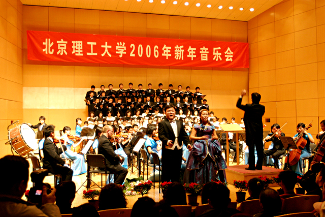 下半場,在中國青年交響樂團首席指揮夏小湯執(zhí)棒的管弦樂《紅旗頌》的恢宏氣勢中把師生再次帶入了音樂的神圣殿堂,奧地利作曲家約翰施·特勞斯的《列車波爾卡》、《狩獵波爾卡》,莫扎特的《第36交響曲》,以及中國管弦樂曲《瑤族舞曲》、《北京喜訊到邊寨》把整場音樂會又一次推向了高潮,演出獲得了極大的成功。