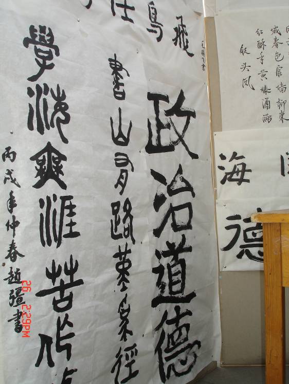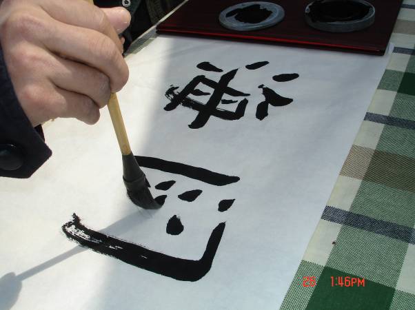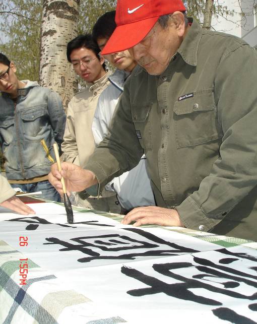 雖然下午風(fēng)較大,但舞動(dòng)的宣紙上更有舞動(dòng)的文字