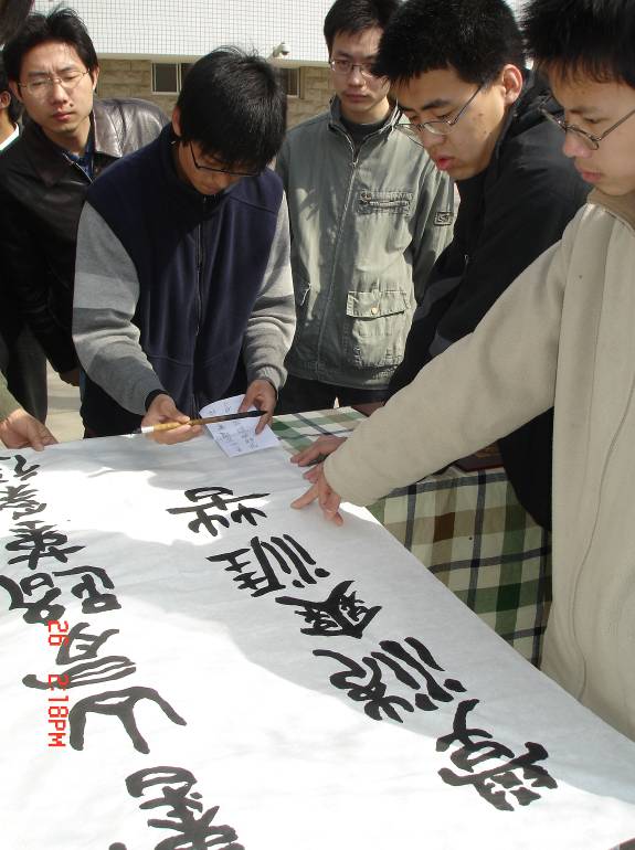 我們的活動(dòng)得到老書法家張治平老師的大力支持,張老師更號(hào)召更多熱愛書法的同學(xué)能夠?yàn)槲覀冎腥A文化的傳承奉獻(xiàn)熱情。此次活動(dòng)之后我們還將陸續(xù)籌劃組織形式多樣的與書法相關(guān)的系列活動(dòng),并有幸邀請到張老師為更多熱愛書法的理工學(xué)子作講演,為更好的營造理工大學(xué)的人文氣息獻(xiàn)出一份力量。