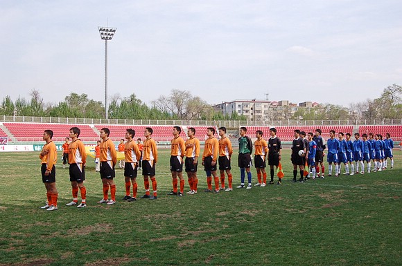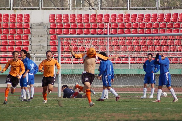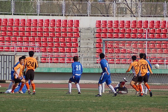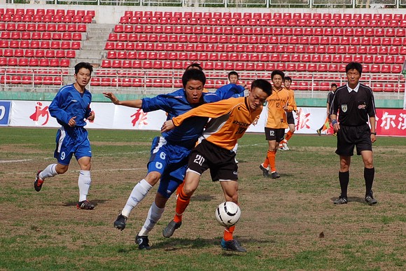 5月20日下午3:00,全國職業(yè)足球乙級聯(lián)賽第三輪比賽在哈爾濱工業(yè)大學(xué)體育場舉行,由我校足球隊(橙色球衣)客場迎戰(zhàn)哈藥毅騰隊(藍色球衣)。哈藥毅騰隊隊員大部分都是來自大連的職業(yè)球員,其中包括兩名重金引進的中超球員,今年聯(lián)賽開賽之前就已經(jīng)定下了沖甲的目標。