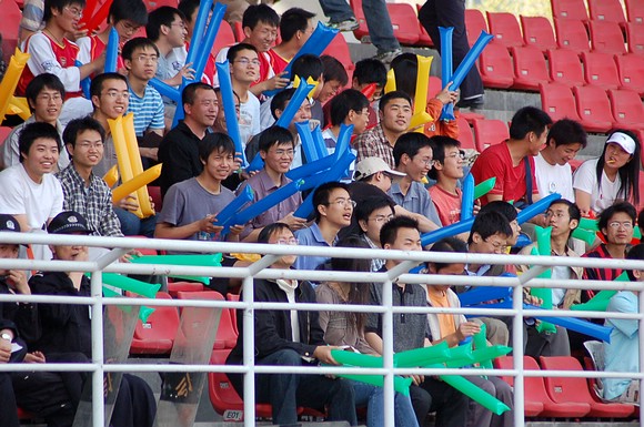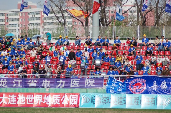同屬國防科工委院校的哈爾濱工業(yè)大學(xué)也組織了百余名球迷前來為我校足球隊加油助威。