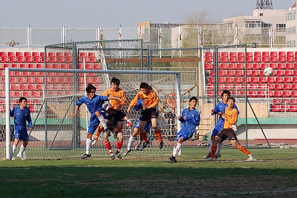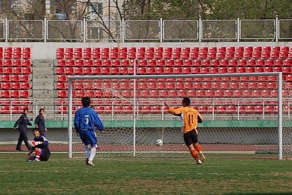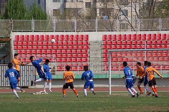 皮球劃了一道優(yōu)美的曲線,越過守門員的頭頂,直抵網(wǎng)底,比分變?yōu)?:0。
