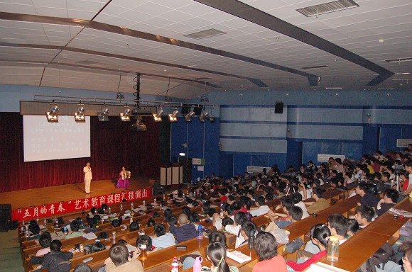 2004年5月藝教中心首次舉辦了藝術(shù)實(shí)踐課匯報(bào)演出,受到同學(xué)們的歡迎和教務(wù)處的肯定。今年是第二次舉辦,同學(xué)們?cè)俅伪憩F(xiàn)出了極大的參與熱情。演出的所有節(jié)目均來自藝術(shù)教育中心開設(shè)的藝術(shù)選修課。老師們結(jié)合課堂教學(xué)訓(xùn)練培養(yǎng)大學(xué)生的藝術(shù)實(shí)踐技能,并編排了一些節(jié)目進(jìn)行讓同學(xué)們演出。