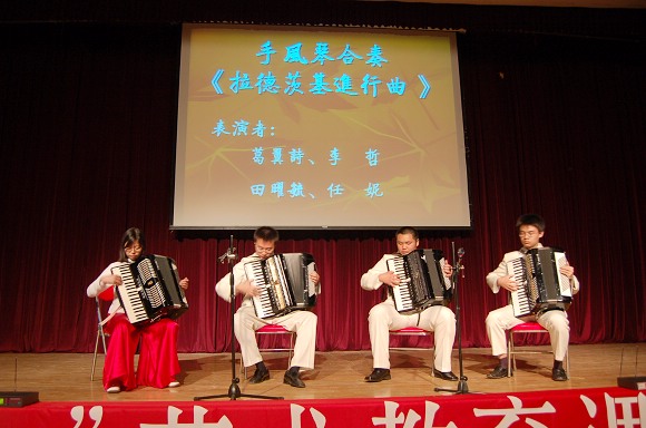 來自張清老師主講的《手風(fēng)琴入門》課堂的同學(xué)們,以精湛的技藝表演了多個(gè)手風(fēng)琴合奏曲目,優(yōu)美的旋律征服了滿場(chǎng)觀眾。