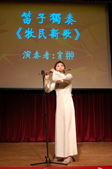 來自王穎老師主講的《樂理基礎(chǔ)實(shí)踐與民歌演唱》課堂的同學(xué)們向觀眾奉獻(xiàn)了獨(dú)唱、笛子獨(dú)奏等節(jié)目,精彩的演出博得了觀眾的掌聲。