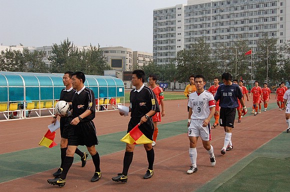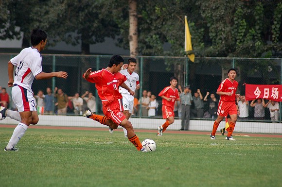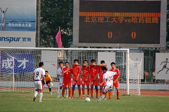 8月26日下午4點,我校足球隊迎來了2006全國足球乙級聯(lián)賽下半程的第二場比賽,在主場迎戰(zhàn)目前排名北方賽區(qū)第四的哈藥毅騰隊,最終對手在裁判的“關(guān)照”下與我方以0:0戰(zhàn)平,雙方各取1分。在今年上半程的首場比賽中,我校足球隊在哈爾濱客場曾以2:0戰(zhàn)勝對手(點擊進入相關(guān)鏈接),而對手踢法粗野,觀眾缺乏文明觀賽現(xiàn)象(點擊進入相關(guān)鏈接)也曾引起媒體界的軒然大波。此場比賽之前,哈藥毅滕隊以5勝3平2負共積18分的成績名列北方賽區(qū)第四位,而我校足球隊在少賽一輪的情況下,以6勝2平1負積20分的成績名列北方賽區(qū)榜首,因此,賽前金志揚總教練要求隊員對此場比賽志在必得。