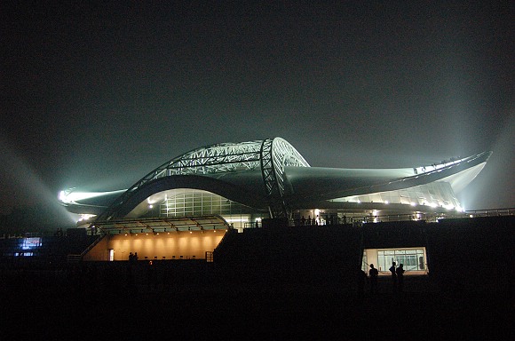 2006年9月19日晚,正在舉行啟用儀式和校園藝術(shù)節(jié)開幕式中的體育文化綜合館夜景。