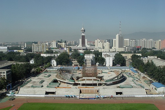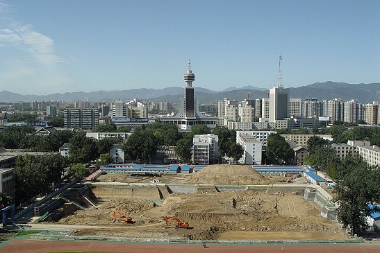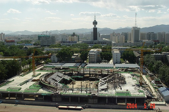 2003年8月29日,“非典”之后的場地,施工隊(duì)已經(jīng)進(jìn)駐。