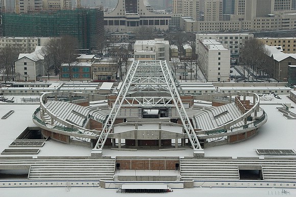 2005年2月24日,雪后的體育館主體鋼結(jié)構(gòu)已然成型。