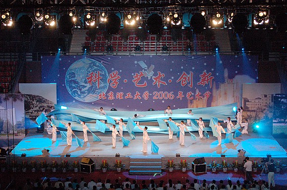 2006年9月19日晚,北京理工大學(xué)2006年藝術(shù)節(jié)開(kāi)幕式在我校體育文化綜合館隆重舉行。北京理工大學(xué)藝術(shù)節(jié)已成功舉辦兩屆,2006年藝術(shù)節(jié)開(kāi)幕式由校團(tuán)委、藝術(shù)教育中心主辦,黨委辦公室、校長(zhǎng)辦公室、總務(wù)后勤部、黨委宣傳部、保衛(wèi)處、校工會(huì)、現(xiàn)代教育技術(shù)與網(wǎng)絡(luò)中心協(xié)辦。開(kāi)幕式晚會(huì)的主辦方對(duì)此次晚會(huì)進(jìn)行了精心的組織與籌備。2006年暑期,我校團(tuán)委及藝術(shù)教育中心的部分老師與參加演出的學(xué)生放棄了暑假休息時(shí)間,冒著酷暑進(jìn)行了艱苦的排練。