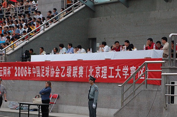 10月7日下午,“云網(wǎng)杯”2006年中國足球協(xié)會乙級聯(lián)賽(北京理工大學賽區(qū))的最后一輪比賽在北京理工大學東體育場拉開帷幕,由已經(jīng)穩(wěn)獲北區(qū)冠軍的北京理工大學足球隊主場迎戰(zhàn)之前暫時排名第四的河北雪馳隊,由于此場比賽的勝負直接關系著河北雪馳隊與目前排名第五新疆體彩隊誰能進入第二階段的比賽,因此吸引了包括中央電視臺、《體壇周報》等媒體的強烈關注。