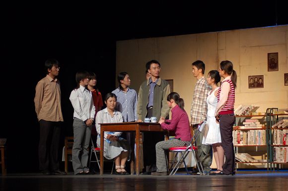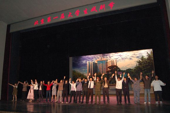 一年一度的大學生電影節(jié)讓首都大學生大飽眼福,現(xiàn)在學生們又有了自己的戲劇節(jié)。與電影節(jié)上只能當觀眾不同的是,在本月16日開幕的第一屆北京大學生戲劇節(jié)期間,來自首都各高校的學生們將成為舞臺上的主角。我校黨委副書記趙平出席了戲劇節(jié)開幕式。北京理工大學的多幕話劇《從延安走來》20日晚在中央戲劇學院劇場隆重演出,該劇展現(xiàn)了學校創(chuàng)業(yè)和發(fā)展的風雨歷程,自去年校慶期間首次推出以來已經(jīng)成為學校的保留劇目。