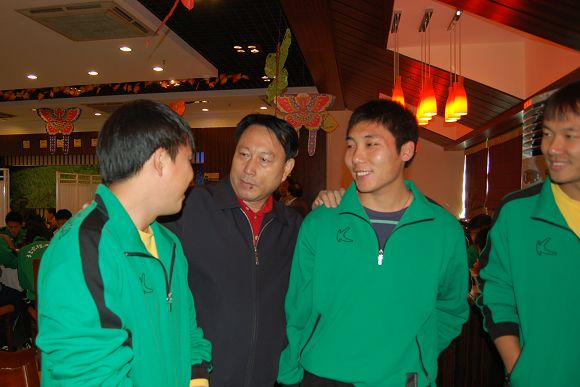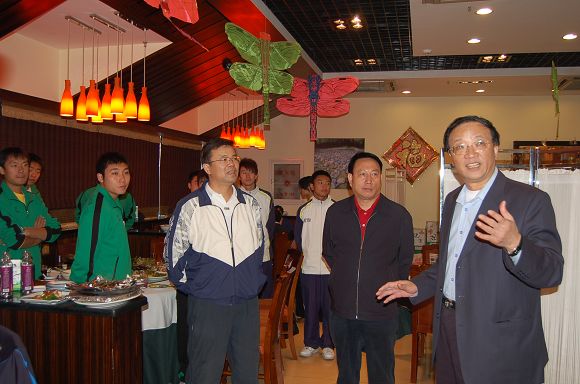 李志祥常務(wù)副校長在詢問足球隊員們的生活和學(xué)習(xí)情況。