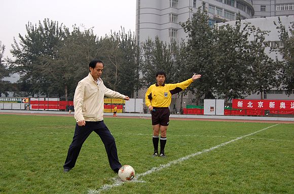 北京市政府辦公廳領(lǐng)導(dǎo)為球賽開(kāi)球。