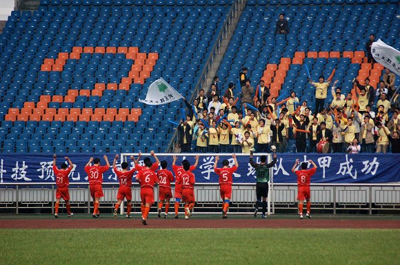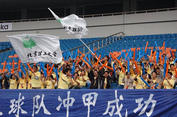 相對(duì)于天津火車(chē)頭現(xiàn)場(chǎng)球迷幾乎零的紀(jì)錄,我校足球隊(duì)組織了百余名球迷現(xiàn)場(chǎng)觀戰(zhàn),熱烈的助威聲幾乎使隊(duì)員把今天的主場(chǎng)挪到了北京理工大學(xué)東操場(chǎng)。