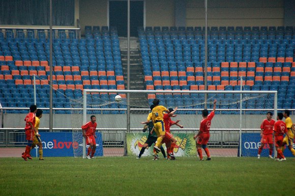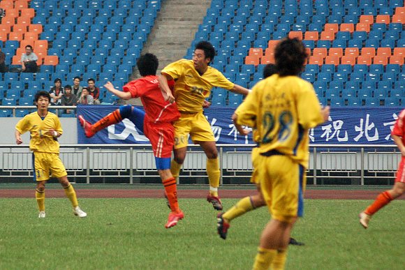天津火車(chē)頭隊(duì)也充分利用了這點(diǎn)優(yōu)勢(shì),頻頻采用長(zhǎng)傳沖吊和定位球的打法,終于在上半場(chǎng)第35分鐘找到了一次機(jī)會(huì),利用角球吊入我方門(mén)前,其場(chǎng)上身高接近2米的后衛(wèi)將球頂入球門(mén)左上死角,打破了場(chǎng)上的僵局。