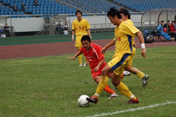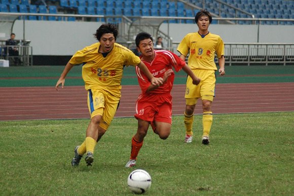 開(kāi)場(chǎng)前的蒙蒙細(xì)雨和陰霾的天空使得現(xiàn)場(chǎng)氣氛異常緊張,畢竟這是關(guān)系到兩支隊(duì)伍誰(shuí)能沖進(jìn)中甲的關(guān)鍵之戰(zhàn),因此比賽剛剛開(kāi)始就似乎進(jìn)入了白熱化,曾兩度交手的雙方都按照自己的思路全力以赴,在球場(chǎng)的每一寸土地上相拼。