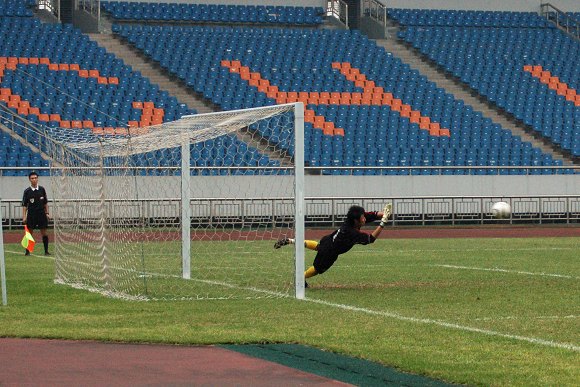 無(wú)奈球速太快,角度太刁,守門(mén)員也只好望球興嘆,鞭長(zhǎng)莫及~~~