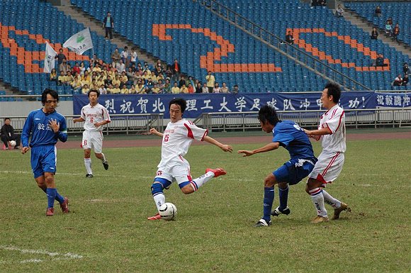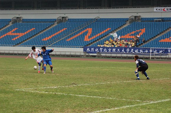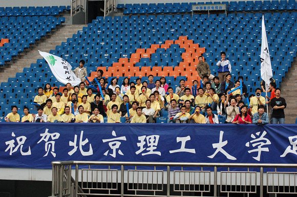 由四川西物科技有限公司和重慶工學(xué)院共同組成的我校球迷助威團(tuán),今天又打著“熱烈祝賀北京理工大學(xué)足球隊(duì)沖甲成功!”的巨大橫幅來到了賽場,自從決賽階段的第一場比賽開始,他們就一如既往地大力支持和贊助北京理工大學(xué)足球隊(duì),使得我校足球隊(duì)所有隊(duì)員都感到“賽場如主場,他鄉(xiāng)似故鄉(xiāng)”。