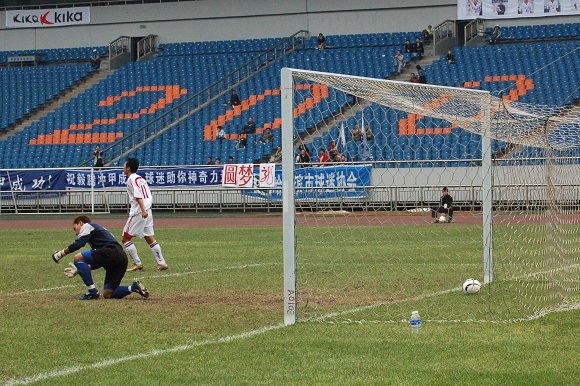 2006年11月2日上午,全國足球乙級聯(lián)賽落下帷幕,在首先進(jìn)行的季軍爭奪中,天津火車頭和安徽隊(duì)上演對攻大戰(zhàn),天津火車頭本來以3:2領(lǐng)先,但在比賽的最后一分鐘又被對手攻入一球,雙方戰(zhàn)成3:3平。這樣續(xù)兩場半決賽后又上演了點(diǎn)球大戰(zhàn),天津火車頭隊(duì)在第六輪點(diǎn)球時(shí)又是一腳高球射飛,最終安徽隊(duì)在點(diǎn)球大戰(zhàn)中獲勝以總比分9:8戰(zhàn)勝了對手獲得了今年聯(lián)賽的季軍,而火車頭隊(duì)在連續(xù)兩場點(diǎn)球失利后遺憾的獲得第四名。