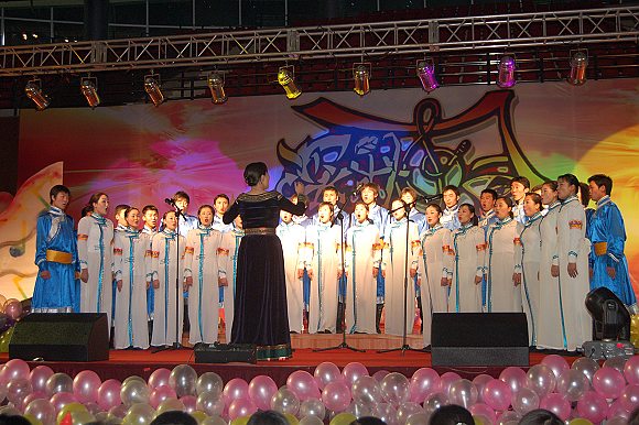 晚會在內(nèi)蒙古大學(xué)牧歌合唱團(tuán)的草原民歌中拉開序幕。這支合唱團(tuán)曾獲得過多項(xiàng)國際大獎,應(yīng)邀為本次晚會表演開場曲目。他們的聲音宛若天邊飄來,展示了少數(shù)民族特有的神秘和蒙古族人的豪放,令場下同學(xué)還未欣賞到選手的表演,就已經(jīng)進(jìn)入了音樂的殿堂。