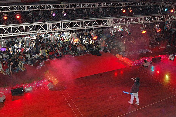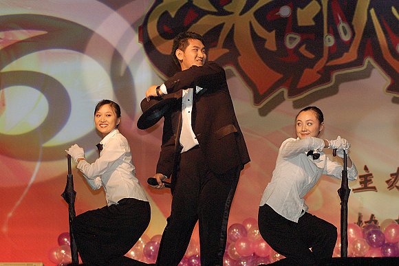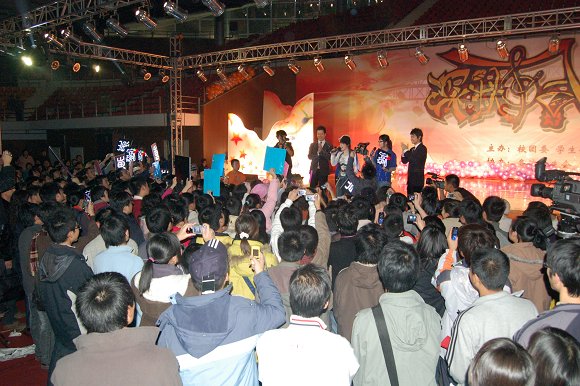 超級(jí)女聲黃雅莉的出現(xiàn)使歌會(huì)現(xiàn)場(chǎng)再次出現(xiàn)了歡呼的高潮。