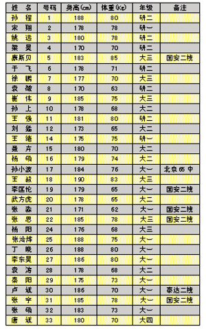 北理工足球隊(duì)球員一覽表 (注:除“備注”外,所有隊(duì)員都來(lái)自人大附中三高俱樂(lè)部)