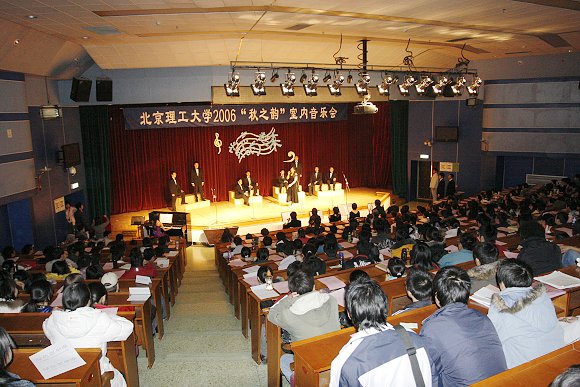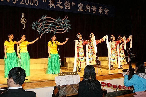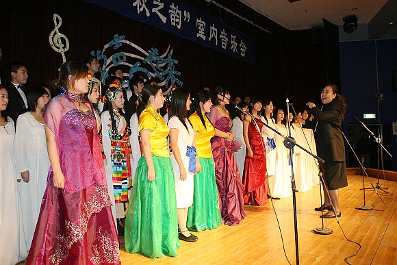 2006年11月27日,一個(gè)靜謐的初冬之夜。大學(xué)生藝術(shù)團(tuán)合唱團(tuán)的同學(xué)們?cè)谥行慕虒W(xué)樓報(bào)告廳為全校師生獻(xiàn)上了一場(chǎng)精心準(zhǔn)備的“秋之韻——掌聲響起來”合唱專場(chǎng)音樂會(huì)。