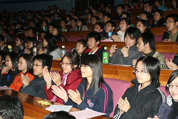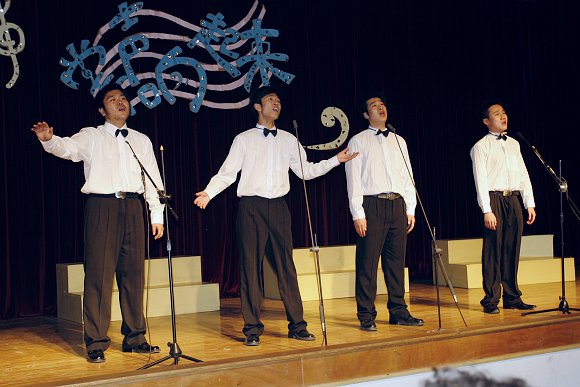 合唱團(tuán)04級(jí)的張開量,05級(jí)的岳崧,06級(jí)的錢星辰都給大家?guī)砹司实难莩K麄冊(cè)趯W(xué)校深秋歌會(huì)中取得過冠亞軍的好成績(jī)。同時(shí),他們還跟大家分享了在合唱團(tuán)的快樂生活。