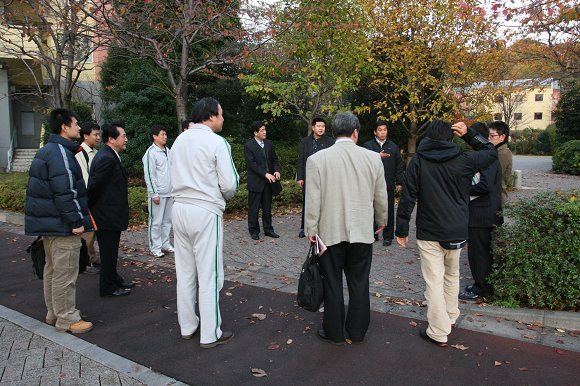 進(jìn)入駐地后,趙顯利副校長(zhǎng)、總教練金志揚(yáng)教授等在與日方接待人員相互介紹基本情況。