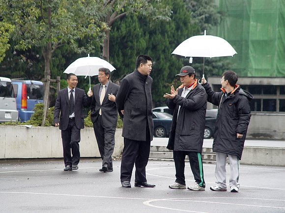 雨勢(shì)時(shí)強(qiáng)時(shí)弱,總教練金志揚(yáng)教授在與接待人員表示,訓(xùn)練照常進(jìn)行。