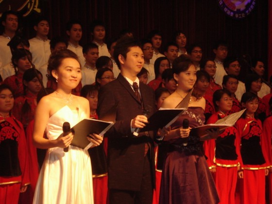 比賽于7點鐘準(zhǔn)時開始,這次歌詠比賽的主持人是來自管理與經(jīng)濟學(xué)院的崔樂洋、聶曉愚、溫曉萌三位同學(xué),比賽開始前,先由主持人介紹了到場的評委以及來賓。我校黨委副書記常務(wù)副校長楊斌同志以及校團委的領(lǐng)導(dǎo)等出席比賽現(xiàn)場蒞臨指導(dǎo),更有長征組歌的作曲之一的著名老一輩革命作曲家、總政歌舞團著名指揮家等著名音樂人士出席本次比賽擔(dān)當(dāng)評委。