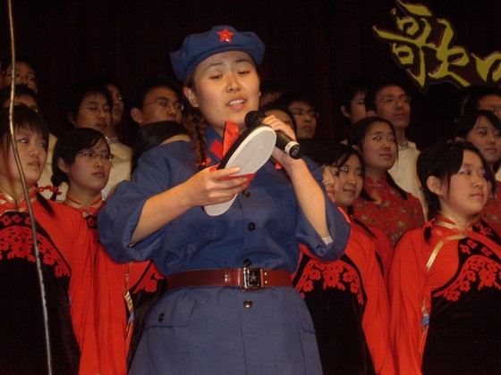 在一陣陣氣勢如潮水般洶涌的掌聲中管理與經(jīng)濟學(xué)院06級參賽選手緩緩走上舞臺,準(zhǔn)備發(fā)出06年歌詠比賽的第一句嘹亮歌聲。通過我院各級領(lǐng)導(dǎo)以及學(xué)院學(xué)生會干部的精心選拔,在經(jīng)歷了將近一個月的精心準(zhǔn)備下,80名衣著整齊、意氣風(fēng)發(fā)的06級管理與經(jīng)濟學(xué)院學(xué)子昂首屹立于今晚屬于全體06級新生的舞臺上,用他們滾燙的赤子之心、融入了對先烈們無限的敬仰之情的、宛如天籟并且婉轉(zhuǎn)悠揚的歌聲,去詮釋他們對老一輩無產(chǎn)階級革命先烈的敬仰之情、對71年前的學(xué)子們的無限崇敬之情。