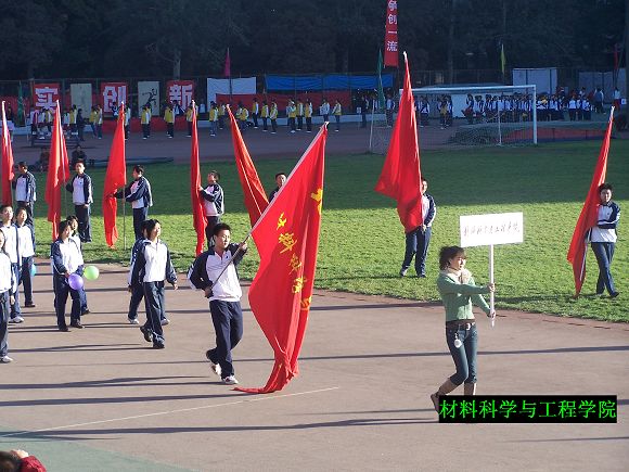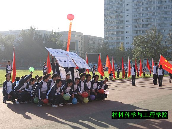 入場(chǎng)式上我院打出了“發(fā)揚(yáng)奧運(yùn)精神,展我材院風(fēng)采“的標(biāo)語表達(dá)志愿奧運(yùn)的信心