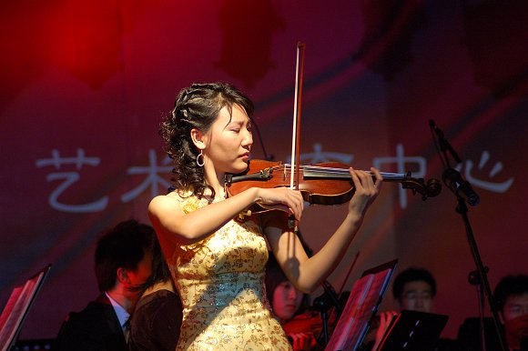 優(yōu)美的小提琴協(xié)奏曲《梁?!妨钣^眾如癡如醉。