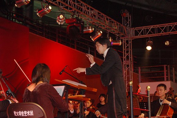 中國(guó)青年交響樂(lè)團(tuán)首席指揮、我校學(xué)生交響樂(lè)團(tuán)常任指揮夏小湯。
