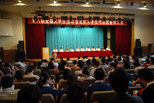 日前,北京市大學(xué)生體育代表團(tuán)在清華大學(xué)舉行了誓師大會。